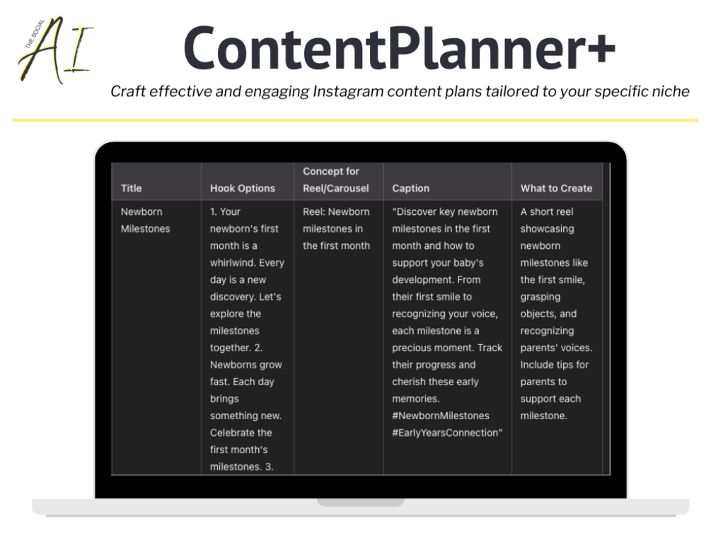 - ContentPlanner+: Develop a month-long content schedule for Instagram, tailored to captivate your audience with visually stunning and strategic posts.